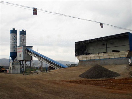 混凝土攪拌樓,混凝土拌和站:HZS60D(斜皮帶)產品結構特點: ⑴機架:機架分上機架和下機架。上機架頂部安裝水泥秤、水秤及其支架、砂石集料斗及支架,上機架中部安裝攪拌主機,下部安裝卸料斗;下機架是上機架的支撐部件,一二層平臺之間設有扶梯,主樓上半部采用彩板封閉。 ⑵骨料供給系統:PL1600A型配料機由倉架、倉體、皮帶機、計量斗、計量杠桿及傳感器組成。倉體是3個8m3的儲料倉及圍板,倉下口敞開式,骨料分別由3臺皮帶輸送機輸送至計量斗,計量方式是計量杠桿---傳感器---電子秤,自動完成砂、石等物料的配料。計量斗下部是1臺皮帶機,將骨料送至18o皮帶機。18o皮帶機由電動滾筒、槽型托輥、下托輥、清掃器、輸送帶、張緊裝置、接料槽和機架組成。將骨料送至集料斗。集料斗由斗體、支架、開關門裝置、防塵罩組成。將骨料投入攪拌機。 ⑶水泥供給系統:水泥(粉煤灰)筒倉由支架、筒體、卸料門、除塵器、破拱裝置、輸料管等組成。水泥經敞開卸料門進入螺旋輸送機。螺旋輸送機由整機和吊裝裝置組成。將水泥輸送至水泥秤。水泥秤由計量斗及拉桿、蝶閥、傳感器、除塵管組成。將水泥投入攪拌機。 ⑷水供給系統:水箱或水池,根據水的資源條件用戶自備水路系統由水泵及支架、水管及管件等組成。將水輸送至水秤。水秤由計量斗及拉桿、蝶閥、傳感器組成。將水投入攪拌機。 ⑸液態外加劑供給系統:儲料桶由兩套儲料桶及支座、不銹鋼泵及支座、排液管閥等組成。管路系統由膠管、管件、閥門、電磁閥組成。將液態外加劑送至其計量秤。外加劑計量秤由計量斗及拉桿、蝶閥、傳感器及支架組成。將液奢望外加劑投入水秤,與水一并投入攪拌機。 ⑹壓縮空氣供給系統:由空壓機、三聯體、管路、電磁換向閥、快換接頭、空氣過濾器等組成。將壓縮空氣送至氣缸、蝶閥、破拱等用氣點。 HZS60型混凝土攪拌站,混凝土攪拌樓產品結構特點: ★采用同樣主機JS1000,大生產率可達60m3/h,比一般的提高20%,即自動循環時1分鐘一個循環,其主要原因是增設了一個砂石計量斗。軸端密封采用分體式,即軸端密封 與軸端潤滑是分開的。 ★砂石計量斗與主機架布置在一起有3個特點。 1料斗底部氣缸開門卸料快,約8秒左右。 2后臺可用料臺式裝載機上料或懸臂拉鏟。 3采用料斗式裝載機上料,后臺布置緊湊,三個骨料倉一字形排列,使裝載機上料方便占地少,總體布置美觀。 ★所有物料采用稱重法計量,保證計量精度穩定可靠(有的用水流量 計),稱量選用高精度傳感器與電子秤,計量精度高達±1%。 ★可以同時采用四種骨料,一種水,三種水泥(含粉煤灰等摻和料),二種粉狀和二種液態外加劑(由用戶選擇)。 ★設有粉狀和液態外加劑儲存、輸送、自動計量系統。 ★電氣元件、氣路管件等關鍵件選用進口件,如限位開關等。 ★控制室隔離,螺旋機振動隔離,減少計量時振動影響及延長控制系統壽命等。 ★在砂石上料形式上,我公司設計有鋼絲繩提升料斗式和大傾角50°皮帶輸送機兩種供用戶選擇。